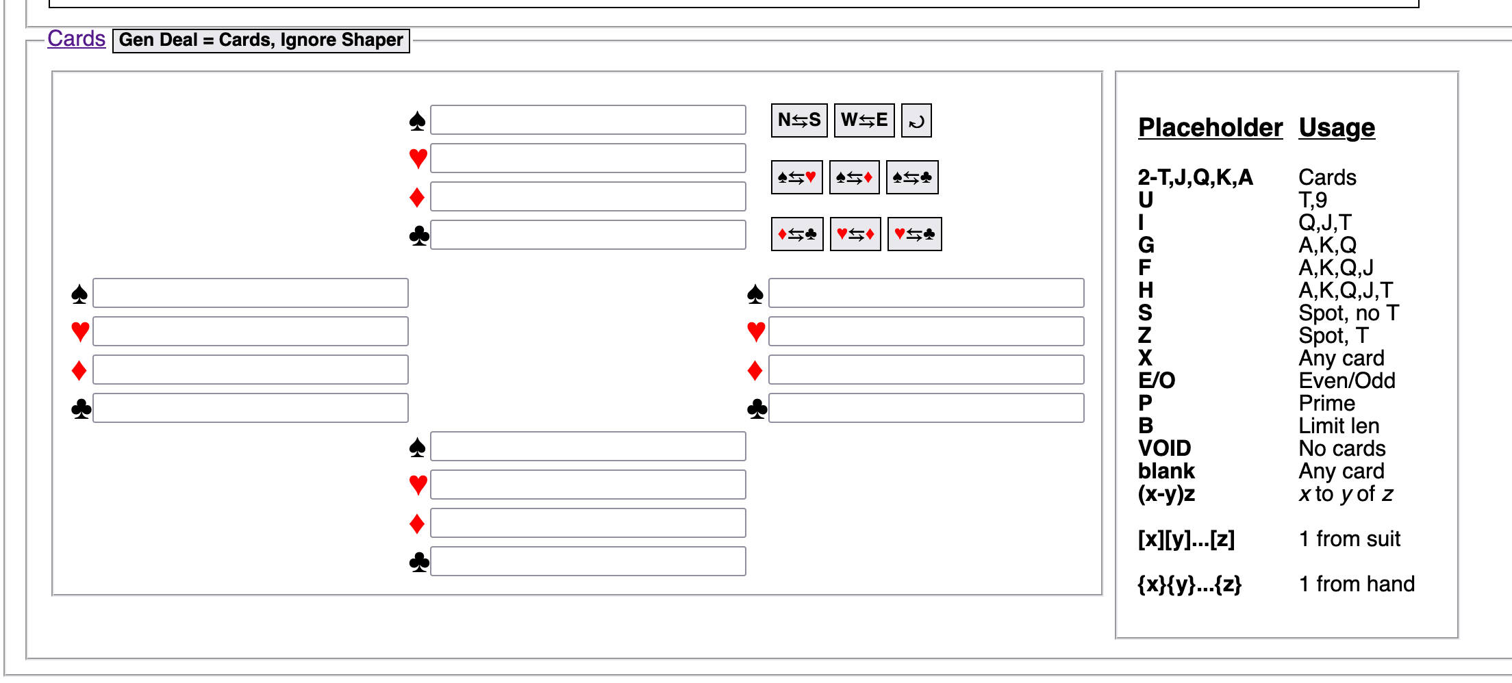 Remember to click the “Gen Deal = Cards, Ignore Shaper” button to see the deal resulting from your Cards setup.